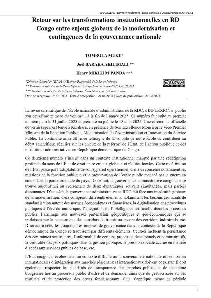 Retour sur les transformations institutionnelles en RDCongo entre enjeux globaux de la modernisation et contingences de la gouvernance nationale