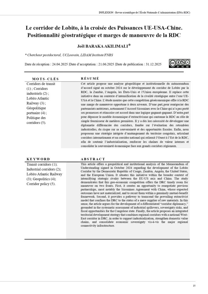 Le corridor de Lobito, à la croisée des Puissances UE-USA-Chine. Positionnalité géostratégique et marges de manœuvre de la RDC