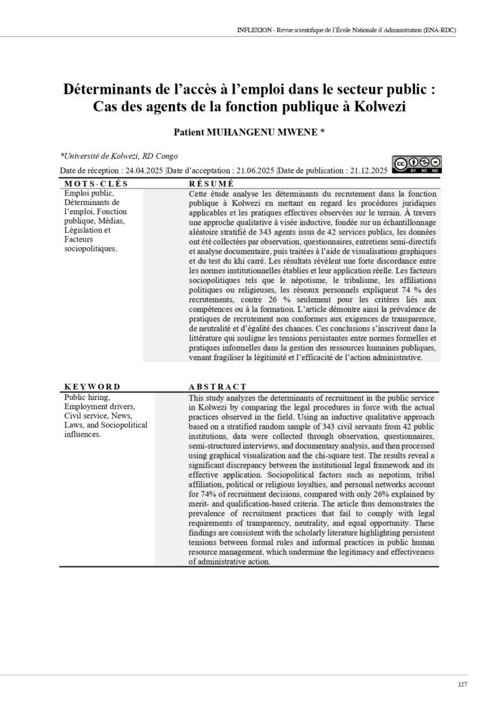 Déterminants de l’accès à l’emploi dans le secteur public : Cas des agents de la fonction publique à Kolwezi